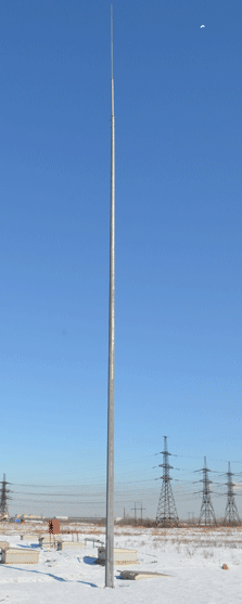 Фото изготовленных нашим заводом стальных отдельностоящих молниеотводов в Бийске: